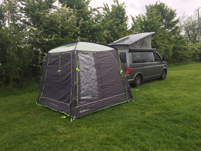There s a sewn in groundsheet and back doors so you can avoid going through the awning to get into the van.